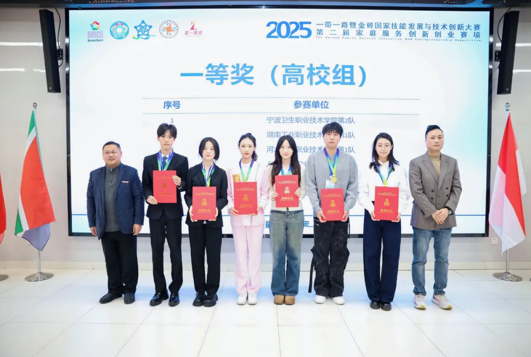 12月20日至22日,在2025“一带一路”暨金砖国家技能发展与技术创新大赛第二届家庭服务创新创业赛项总决赛中,学院代表队表现优异,学生团队荣获一等奖,指导教师贾素巧、刘晶晶获“优秀指导教师”称号,学院同时获评“最佳组织奖”,展现了学院在家庭服务专业教育与创新实践方面的扎实成果。