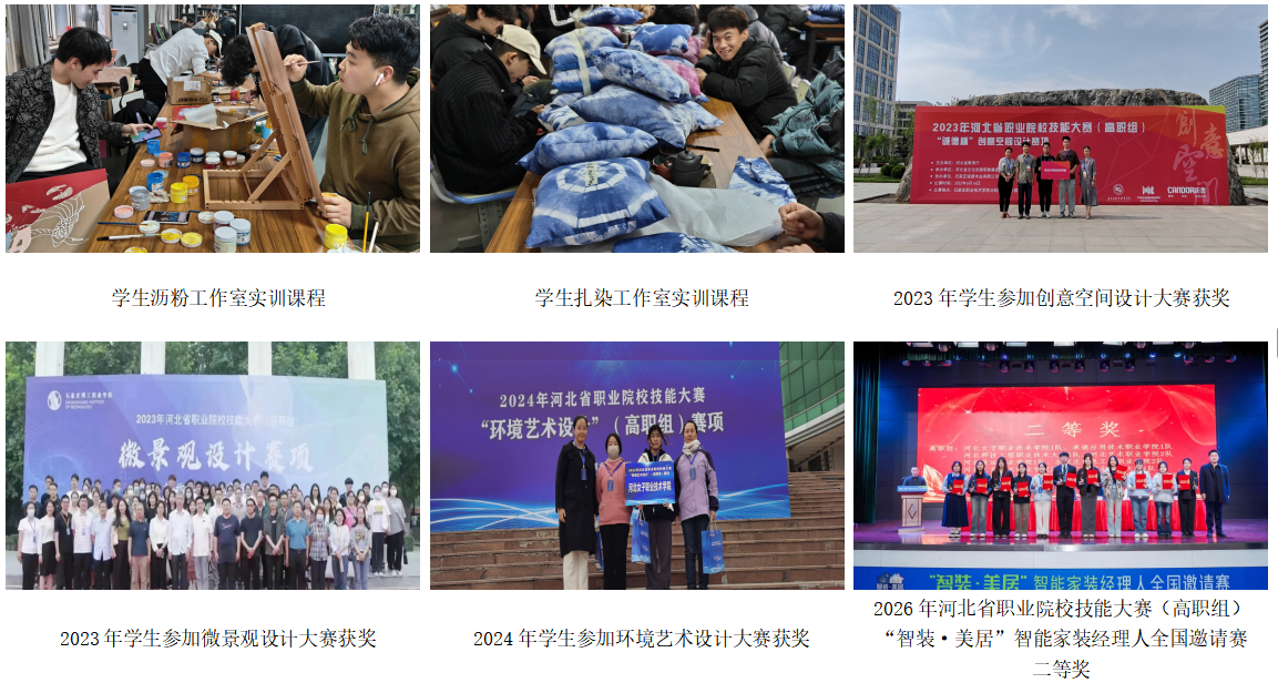 专业教学突破课堂界限,将课堂、实训室与校内真实工作场所结合起来,突出教学与实训、实习地点的一体化。建筑室内实训室机房可容纳多个班级学生同时上机操作,进行3DMAX建模制图、施工图绘制、效果图后期处理、陈设与软装设计等实训教学。校内还拥有建筑模型设计工作室、VR建筑室内设计实训室、室内设计创新工作室、陶艺工作室。专业群积极开拓校外实习基地,现有石家庄业之峰装饰有限公司、石家庄今朝装饰设计有限公司、石家庄元洲装饰公司等校企合作基地。为学生实践技能的培养提供了现代化全真的教学环境。